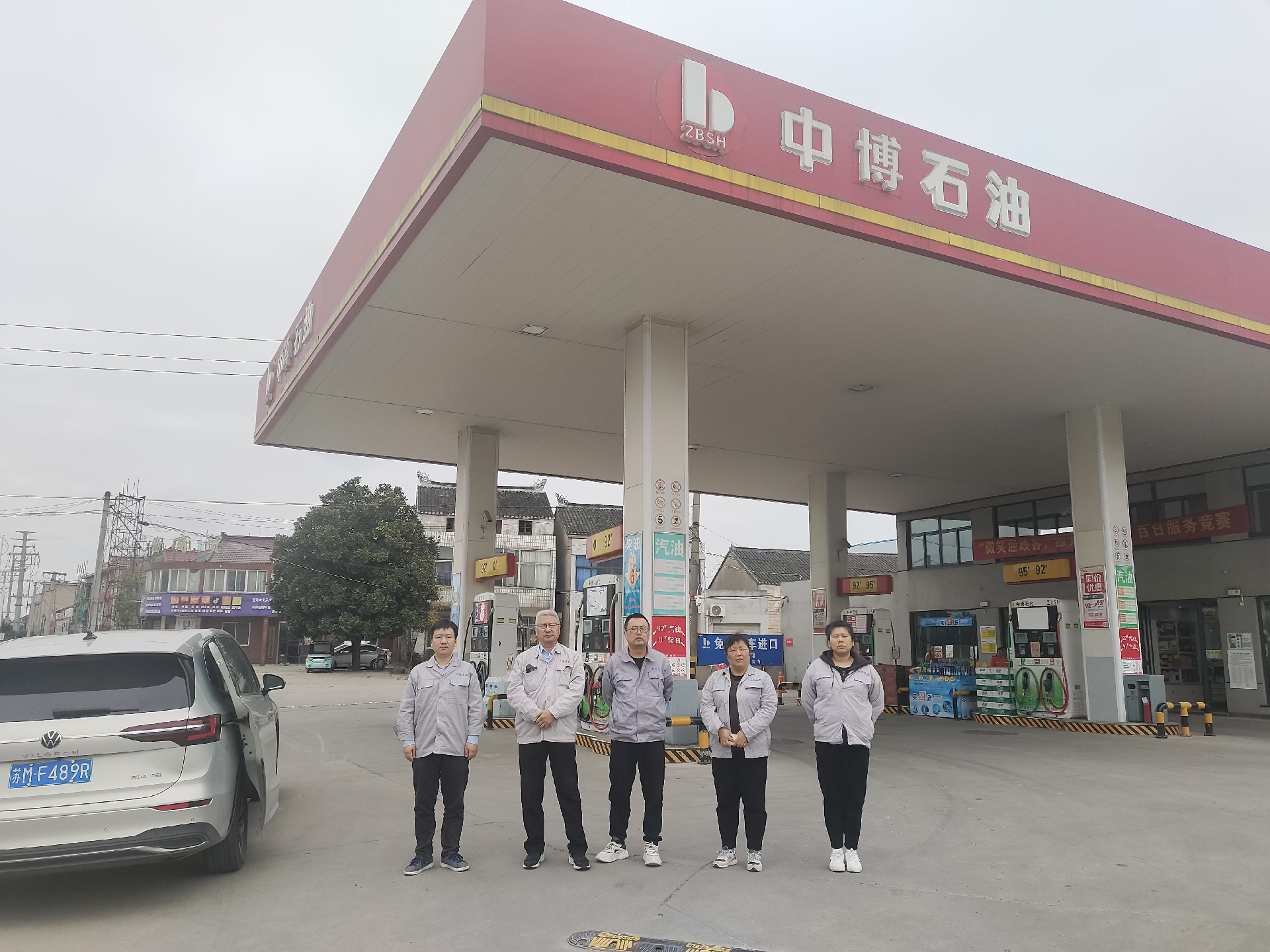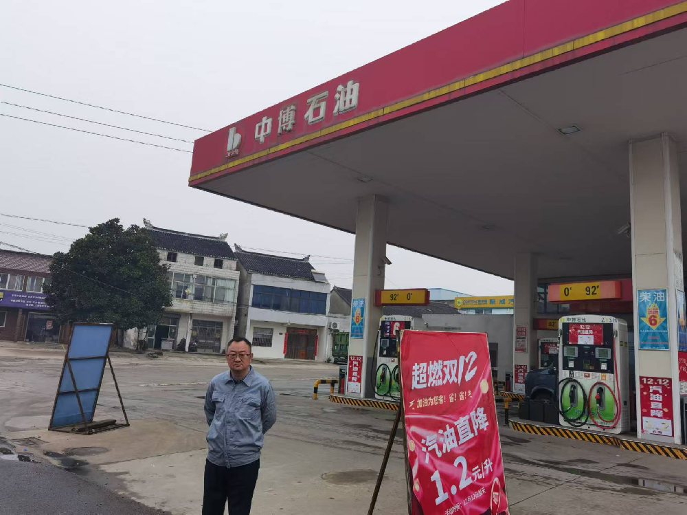 项目基本情况 | 靖江市福博石化有限公司成立于2024年06月17日,已领取靖江市行政审批局核发的《营业执照》(统一社会信用代码:91321282MADNNR8E69),企业性质为有限责任公司(自然人投资或控股的法人独资),地址位于靖江市西来镇创新村江平路888号,主要从事危险化学品汽油、柴油和一般经营项目润滑油等的零售业务。靖江市福博石化有限公司现有从业人员10人,其中主要负责人为陈祖斐,经无锡市应急管理局考核合格,站长为陈建豪,专职安全员为陈文庆,经泰州市应急管理局考核合格,均取得了考核合格证。靖江市福博石化有限公司占地面积1665m2,共设置3只埋地内钢外玻璃纤维增强塑料双层油罐,25m392#汽油储罐1只、15m395#汽油储罐1只、30m30#柴油储罐1只,总容积为70m3,实际折算总容积为55m3(柴油罐容积折半计入油罐总容积),电脑税控潜油泵加油机4台共计16枪(均为4枪双油品加油机)。根据《汽车加油加气加氢站技术标准》(GB50156-2021)表3.0.9条等级划分,靖江市福博石化有限公司为三级加油站。 | |||