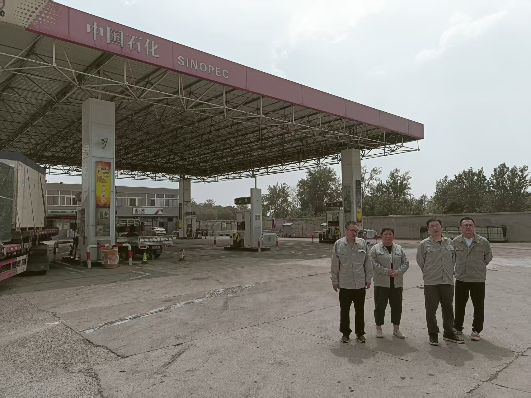 项目基本情况 | 中国石化销售股份有限公司江苏泰州兴化合塔加油站(以下简称中石化兴化合塔加油站)成立于2001年10月9日,企业性质为分公司,地址位于兴化市合陈镇界牌村,主要从事危险化学品汽油、柴油和一般经营项目润滑油、尿素溶液等的零售。中石化兴化合塔加油站现有从业人员8人,其中主要负责人为黄晓梅,站长为顾公,专职安全员为邵永红,均经泰州市应急管理局考核合格,取得了考核合格证。中石化兴化合塔加油站占地面积2375.9m2,共设置5只30m3埋地SF双层油罐,其中汽油储罐2只(分别为1只30m392#汽油储罐、1只30m395#汽油储罐),柴油储罐3只,总容积为150m3,折算总容积为105m³(柴油罐容积折半计入油罐总容积),电脑税控潜油泵加油机7台共计18枪潜油泵加油机[其中加油场地设置电脑税控加油机6台共计16枪(包括2台四枪双油品加油机、1台双枪双油品加油机,3台双枪单油品加油机),水上柴油加油机1台2枪已停用],根据《汽车加油加气加氢站技术标准》(GB50156-2021)表3.0.9条等级划分,中石化兴化合塔加油站为二级加油站。 | |||
