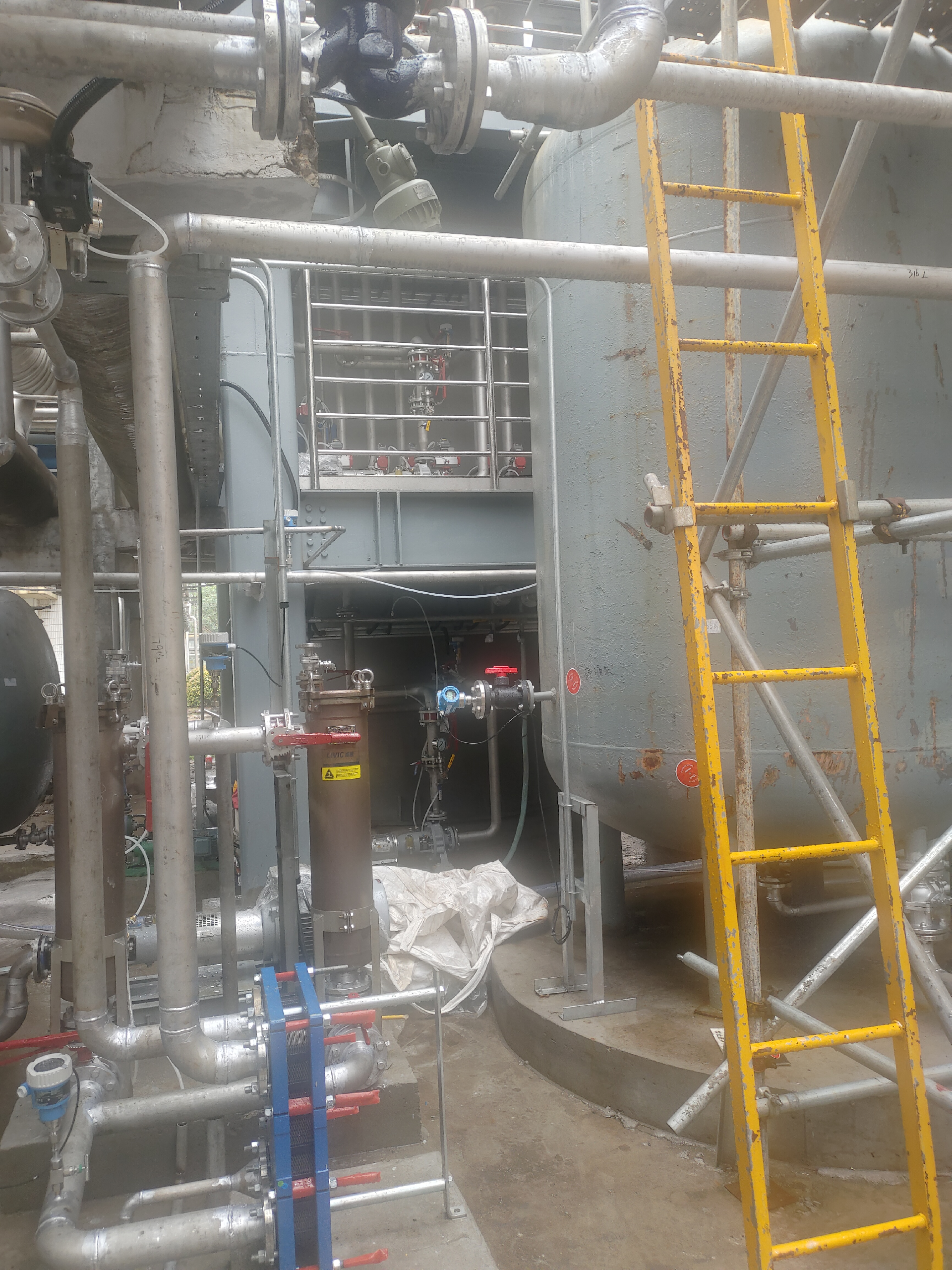 项目基本情况 | 企业为提高安全生产水平、节能降耗、提升产品质量和收率,拟更换部分老旧设备,调整结晶分离(后处理工序,不涉及反应工序)工艺,具体变更如下: 一、空压机更换 1、在动力车间空压岗低压系统,拆除3台老旧螺杆式空压机,新安装5台磁悬浮离心式空压机CG/A400-2L/A,额定流量152m3/min,主电机额定功率400kw,额定工作压力2.0bar,2级压缩机。磁谷磁悬浮空气压缩机采用高速电机直驱结构和磁悬浮轴承技术,整个系统没有其他机械传动结构,与传统压缩机相比,该产 品无需增速齿轮箱,可节能约20%;无需润滑,100%无油;易安装、易维护。 2、新增2台与上述磁悬浮离心式空压机配套的CG-BN150T闭式冷却塔,冷却水量150t/h,冷却能力750000kcal/h,配套电机功率18.5kw循环泵2台。 3、空压岗低压系统将新装5台磁悬浮离心式空压机、1台阿特拉斯离心式空压机进行联控。 对照《泰州市危险化学品企业变更管理实施办法(试行)》泰应急〔2022〕8号文,此变更为装置在役阶段的辅助设备非同类型替换,未降低安全设计总计水平,属于较大变更。 二、粗VC母液色谱分离 1、拟在转化车间酸碱场地东侧新增2个直径3m的 VC和古龙酸分离的色谱柱,使用上市公司蓝晓科技的色谱分离技术和色谱分离树脂,采用纯水为驱动介质,将VC生产线中的连续结晶母液纯化,实现VC和古龙酸的物理分离,替代原来的母液浓缩、结晶分离过程。 2、配套4层钢结构以及顶棚、相应缓冲罐及泵组,纯化后的VC用于转化车间食品线,古龙酸回到前道车间,提高 VC的整线收率。 此变更不涉及化学反应,分离过程属于物理分离,从而避免粗VC母液多次浓缩结晶,此变更不涉及危险化学品。对照《泰州市危险化学品企业变更管理实施办法(试行)》泰应急〔2022〕8号文,该变更为装置在役阶段的不涉及反应单元的工艺路线变化,未降低安全设计总体水平,属于较大变更。 本次变更已于2025年9月11日取得了靖江市应急管理局的《关于江苏江山制药有限公司申请变更的复函》。 本次变更涉及的物质主要为压缩空气、粗VC溶液、纯水、VC溶液、古龙酸溶液,根据《危险化学品目录》(2015版,2022年调整),本次变更不涉及危险化学品。 本次变更不涉及剧毒化学品、易制毒化学品、高毒物品、重点监管危险化学品、易制爆危险化学品、监控化学品、特别管控危险化学品。 本次变更不涉及危险化工工艺、高危储存设施。 | |||