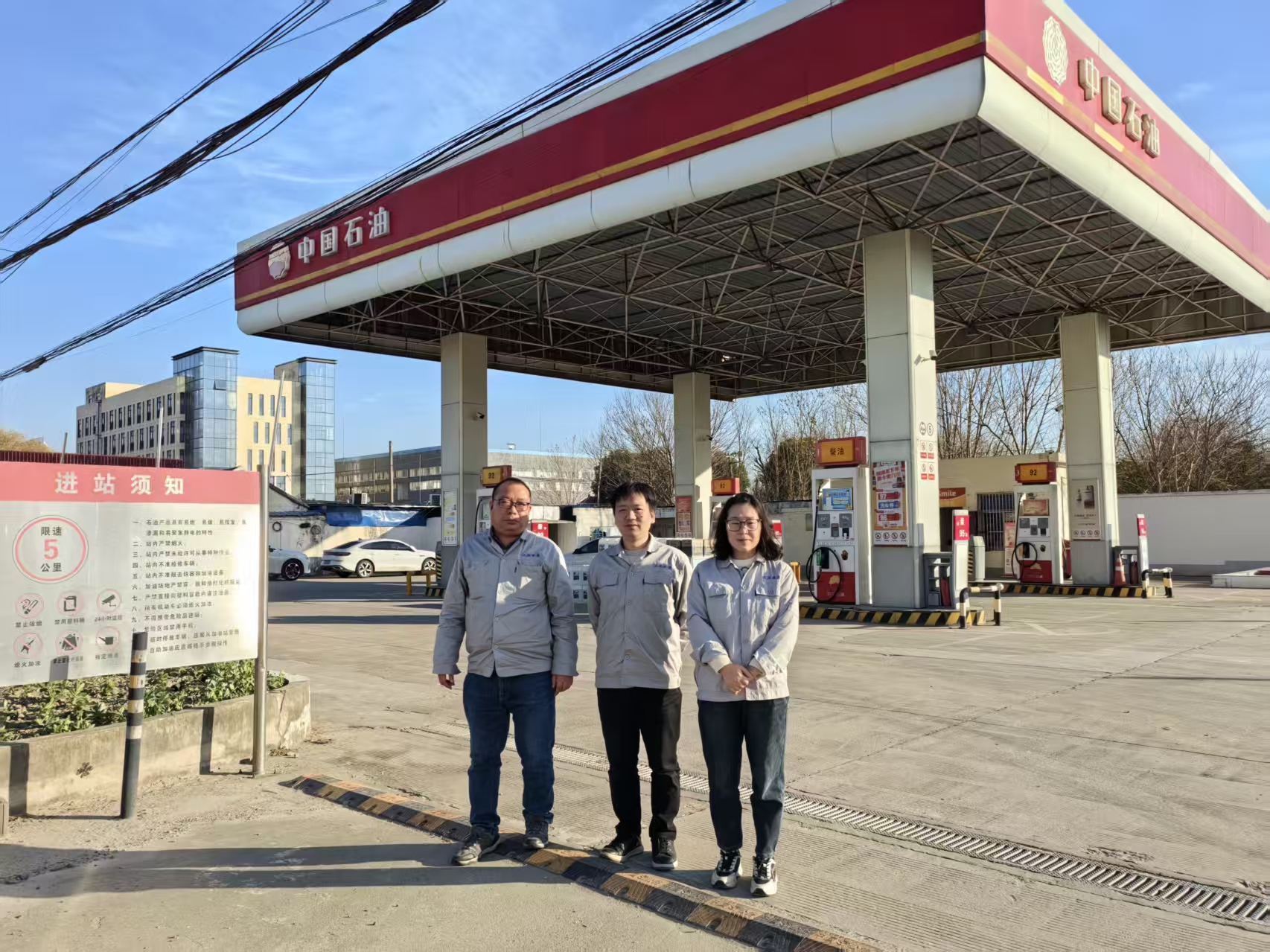 项目基本情况 | 中国石油天然气股份有限公司泰州高港姜高加油站(以下简称中石油泰州姜高加油站)成立于2004年09月10日,企业性质为股份有限公司分公司(上市),地址位于泰州市白马镇陆家村,主要从事危险化学品汽油、柴油和一般经营项目润滑油等的零售业务。中石油泰州姜高加油站现有从业人员5人,其中主要负责人为王殿阁,站长为任来扣,专职安全员为张亚平,均经泰州市应急管理局考核合格,取得了考核合格证。中石油泰州姜高加油站占地面积1682.1m2,共设置5只埋地SF双层油罐,其中20m392#汽油储罐2只、20m395#汽油储罐1只、30m30#柴油储罐2只,油罐总容积为120m3,实际折算总容积为90m3(柴油罐容积折半计入油罐总容积),电脑税控加油机4台共计8枪(其中3台为双枪双油品,1台双枪单油品),根据《汽车加油加气加氢站技术标准》(GB50156-2021)表3.0.9条等级划分,中石油泰州姜高加油站为三级加油站。 | |||